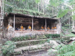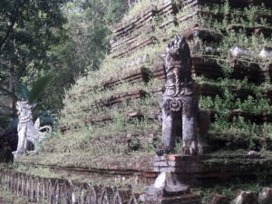 Now we are talking about the hidden temple called “Pha Lat Temple” ( Sakitakhami Temple), located a few kilometers of Doi Suthep road, in the shaddy forest area.  No shops and not crowded, in the forest, peaceful area. From the Chiang Mai city, you could heading west side towards to Doi Suthep Temple. Passing Chiang Mai University, Chiang Mai zoo and continue the road a bit. You would find Pha Lat, the hidden temple on your left. Walking to the temple area, it is a pleasant atmosphere with the trees and shade. Temple is quiet and peaceful. You could walk around and worship to the Lord Buddha images in temple.  Walk a little more you could see the small waterfall with the nice view of Chiang Mai which offers you the view through the forest and the city as its background. From that point, there is the trail used by the monks when walking for the Alm blow offering in the morning from the village below.