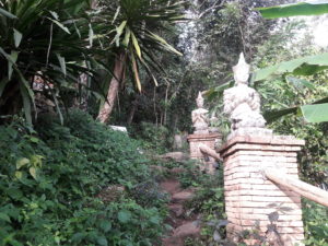 The walking trail is not difficult to walk along. It would take 40 minutes from the temple to the exit which is behind Chiang Mai University. Along the trial, you could find the pleasant atmosphere of the forest and peacefulness which you could get. No wonder why people called this temple, the hidden temple.  Sometimes you could also see people walking up to the temple as well.