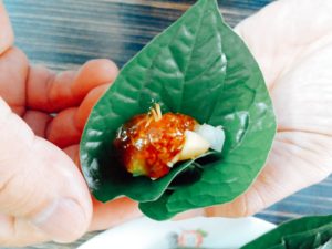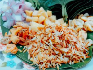 This time we are going to write about, Miang Khum ( You could also say –Miang Come). It is a local snack in Northern Thailand and Laos. The Miang Khum was introduced to the Siamese King by Princess Dara Rasami of Chiang Mai Lanna as a snack for picnic or party.
