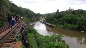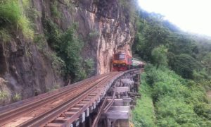 From the main street called “ Saeng Chuto Rd.,” you could find the train station which you could get on the local train and tracing the railroad on the Death Railroad. There would be 2 different trips for the train. One train you could catch and start the trip from Bangkok, however it would leave Bangkok very early. We do suggest the second choice by taking the train from Kanchanaburi train station which would take only an hour for the ride. You could enjoy and see the famous Death Railroad until get off at Tham Krasae Station. The train leads you through the local area by passing the small villages, passing the River Kwae Bridge ( 2rd War World Bridge from iron over the River Kwae) and finally before reaching Krasae Station, you could find the railroad goes slowly against with the cliff where you could see the depth from the train window. This is the highlight for you to take photos. The train would stop by Krasae Station for us to get off and then continue on its way. After get off the train, you could also walking on the death railroad for taking the pictures as well as visit Tham Krasae ( Krasae cave) near by the railroad where once during the 2nd World War used to be the shelter for the captive at that time.