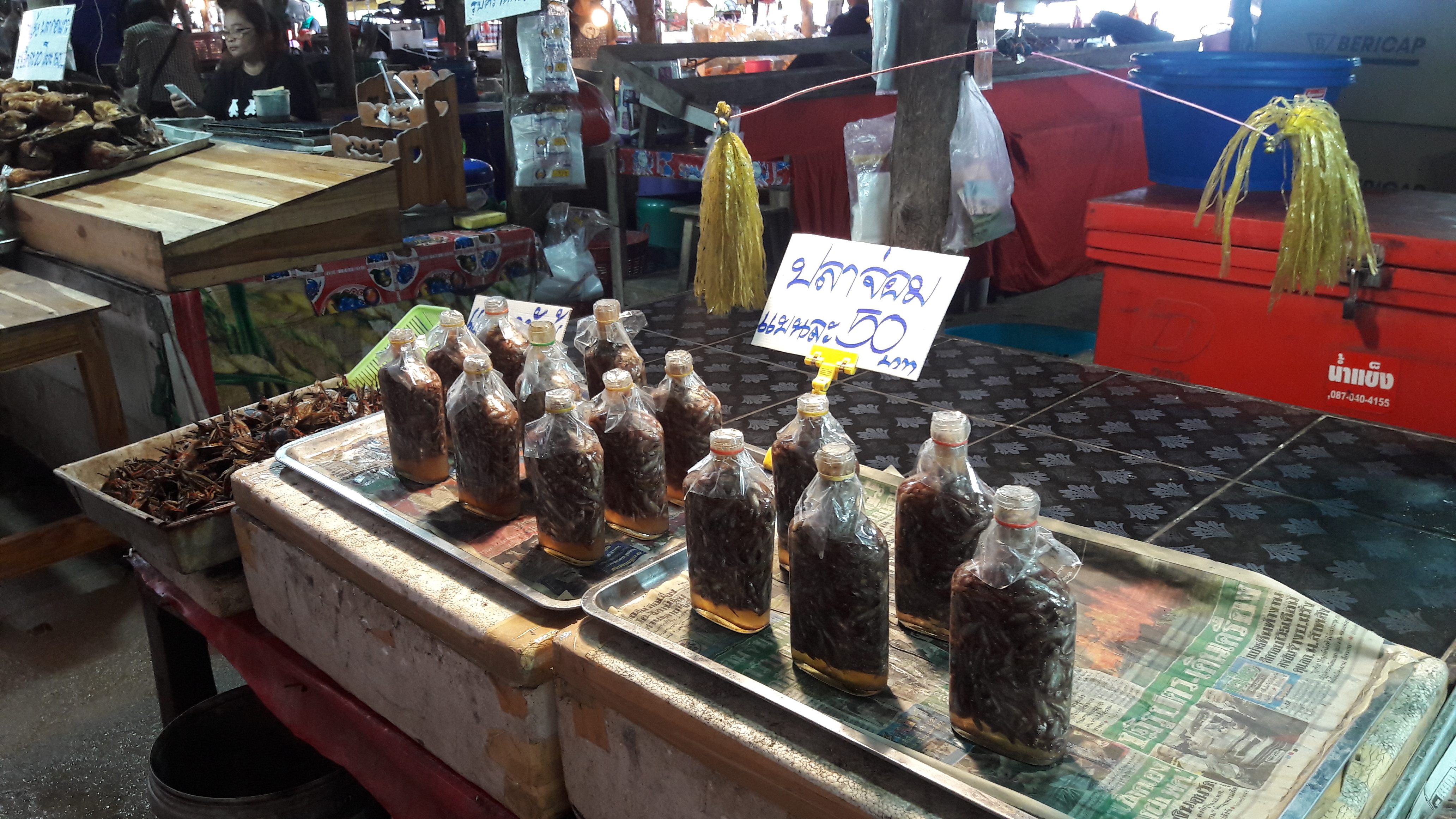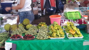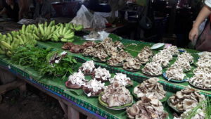In the market, there is the small tables under the zinc roof to protect the venders from the sun and rain. There are things you couldn’t find the big super markets  :-