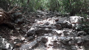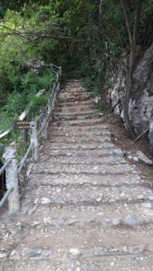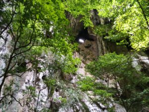 At the time , we chose the 2nd choice due to the time limit. While we were on our way to the cave , we had seen the primate called “ Dusky Langur” wander around and look at us from the trees’ top. We’re quite lucky to see the Wood pecker as well as some Jungle fowl as well on the walk way. From the entrance , you could see the sign “ Phayanakorn Cave 450 meters up and of course it’s the time to exercise.