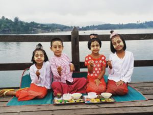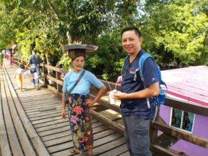 The next morning, we woke up early and headed to the wooden bridge called” Sa-pan-Mon”. This bridge is locally known as Uttamanusorn Bridge or Mon Bridge. The bridge built crossing over Song Kalia River linking Sangkhlaburi market and Mon* Village. (* Mon – the local people are an ethnic group native to Myanmar’s Mon State, Bago Region, the Irrawaddy Delta and the southern border with Thailand. One of the earliest peoples to reside in Southeast Asia, the Mon were responsible for the spread of Theravada Buddhism in Indochina. The Mon were a major source of influence on the culture of Myanmar. They speak the Mon language, an Austroasiatic language, and share a common origin with the Nyah Kur people of Thailand, they are from the Mon mandala (polity) of Dvaravati. The eastern Mon include the current royal family of Thailand who are of Mon ancestry. The Mon assimilated to Thai culture long ago, yet the royal women of the Chakri dynasty perform and keep their Mon heritage alive in the Thai court. The western Mon of Myanmar were largely absorbed by Bamar society. They have worked to preserve their language and culture and to regain a greater degree of political autonomy.)