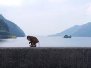 It is a concrete-face rock –fill dame with 1,019 meters in length and 92 meters in hight long stretching across the Kwae Noi River. Overlook from the Dam, you could see the lovely view of the big dam there are 3 of 100MW hydropower generators came on line in October and December 1984 and February 1985 respectively. The reservoir created by the dam has a maximum storage capacity of 8,860 million cubic meters covering a total catchment area of 3,720 square kilometers. Average runoff into the reservoir is approximately 5,500 million cubic meters per year. Not only the view of the reservoir itself. You could also meet the wild monkeys who live up the hill around the dam. They usually come down and looking for the food. Our suggestion is no touching and if they come down, it is better to stay away from them or keep the distance for safety as they are quite aggressive.