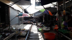 Train Market, Thailand or known by the local people in Thailand, “ Ta-lard Rom Hoop”.
